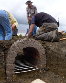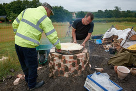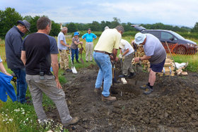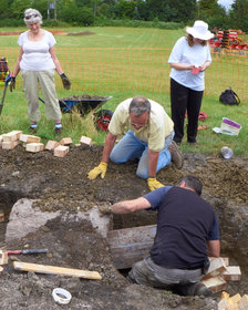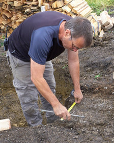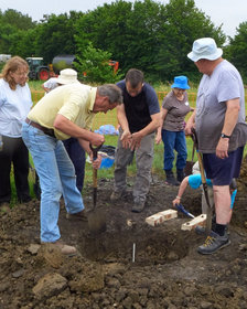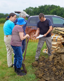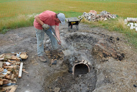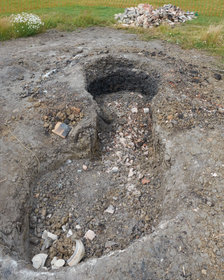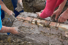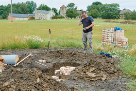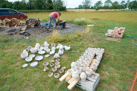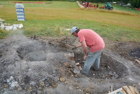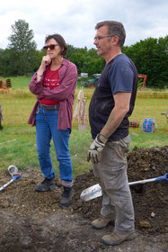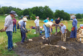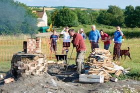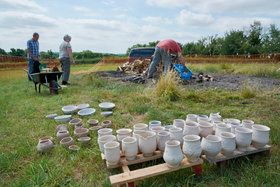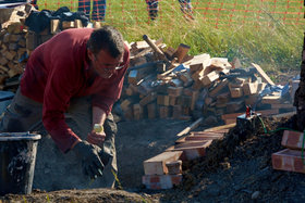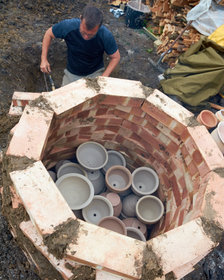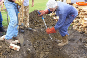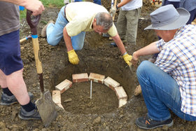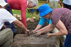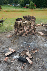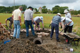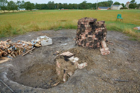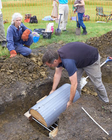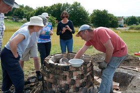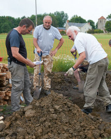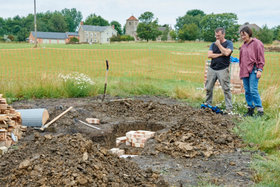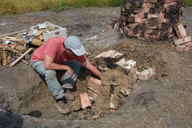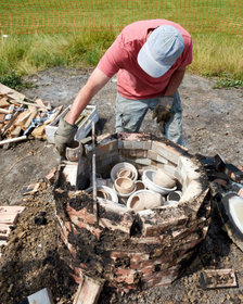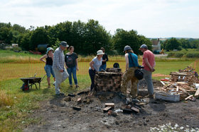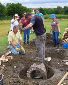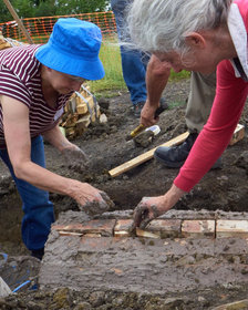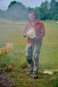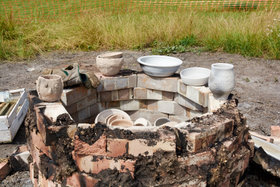 In July, Jigsaw Cambs. ran an experimental archaeology training course during which participants would build and fire a replica Roman kiln in Manor Field, Covington. The activity was led by Jon Cane who has built two other kilns, the last one being at Fane Road, Peterborough. The kiln took one day to build, one day to fire and a further day to cool, empty and remove. Jigsaw members who had made or decorated pots in earlier courses on Medieval and Roman pottery were given the opportunity to have their work fired in this kiln. Pots made by Jon that were also fired in the kiln were offered for sale at the Training Dig Open Day. Enjoy the selection of photos below (kindly taken by John Turrell) recording every stage of the process.