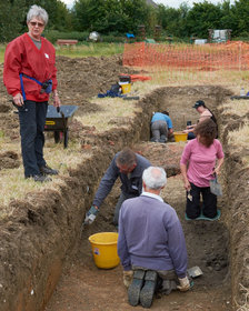 Jigsaw members and others came from all over Cambridgeshire (and elsewhere) to take part in Jigsaw's training dig, held in Covington. During the fortnight, there was also a Medieval pottery making course and a replica Roman kiln was built and fired. Enjoy the selection of photos below (kindly taken by John Turrell) and look out for a report on the dig to be published by Jigsaw.